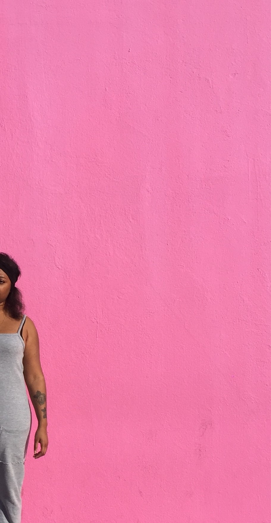 Arrêtez-vous pour faire une photo devant le mur rose !