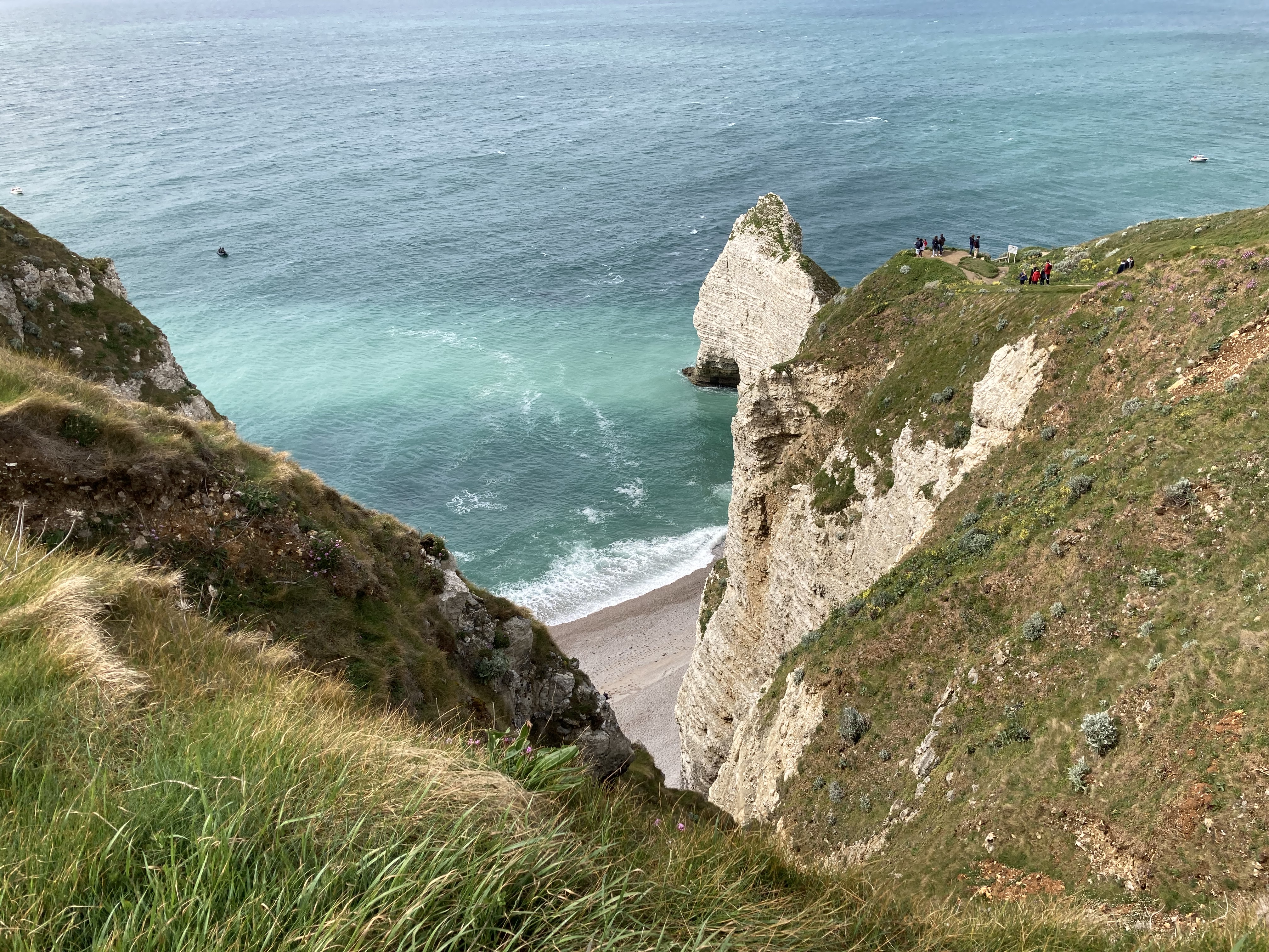 La randonnée sur la falaise d’Amont offre un magnifique panorama sur la falaise d’Aval (son aiguille et sa porte).