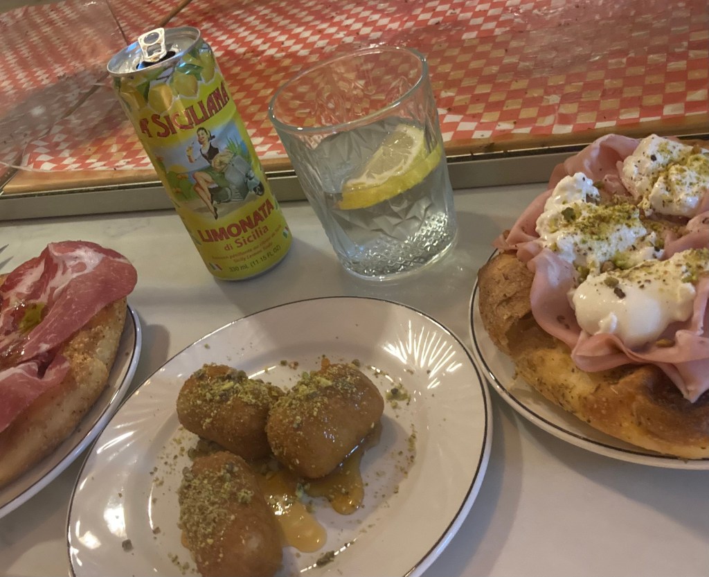 Un café italien et comptoir à sandwichs. La focaccia au prosciutto et le cheesecake pommes/caramel sont succulents.