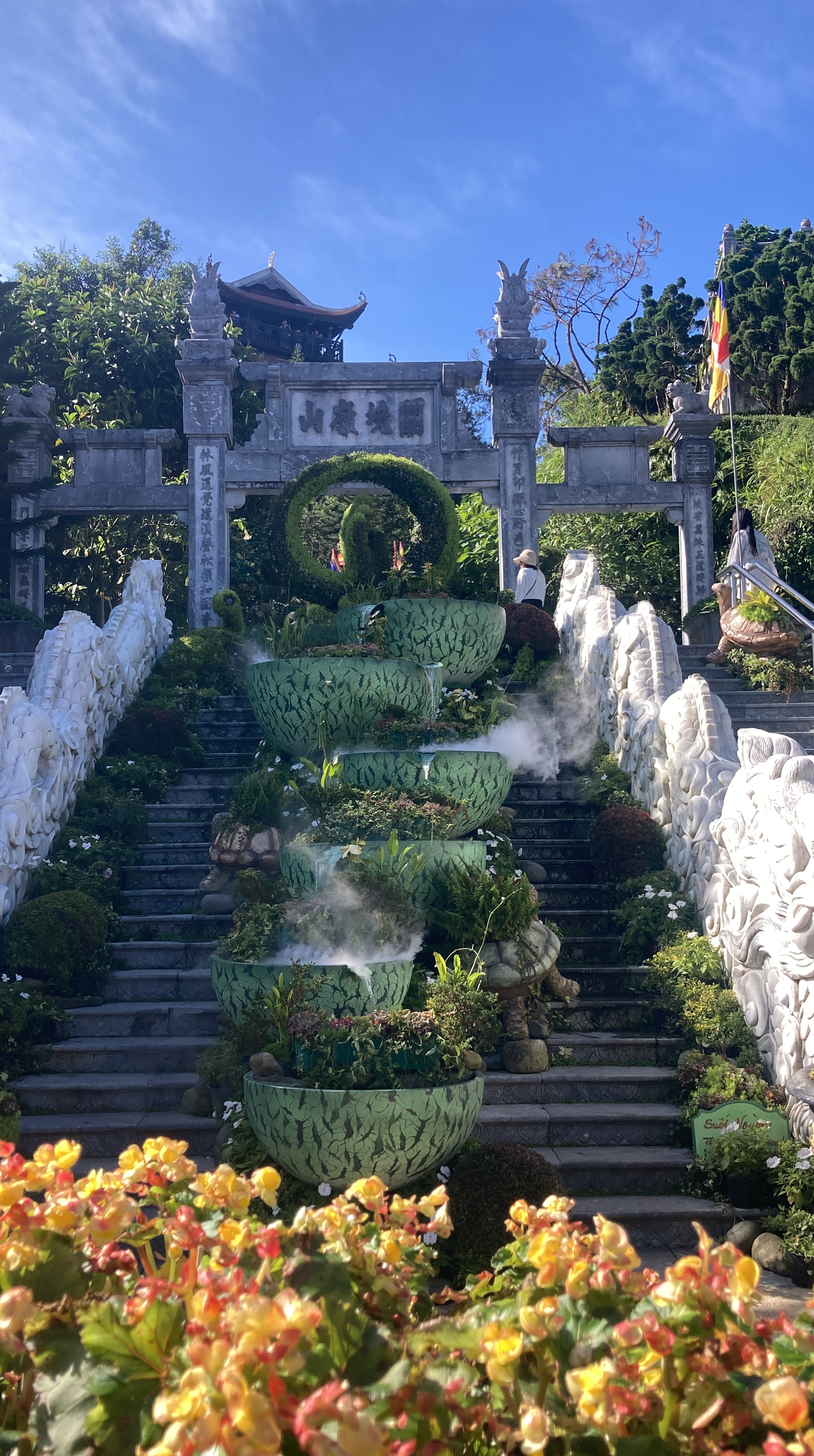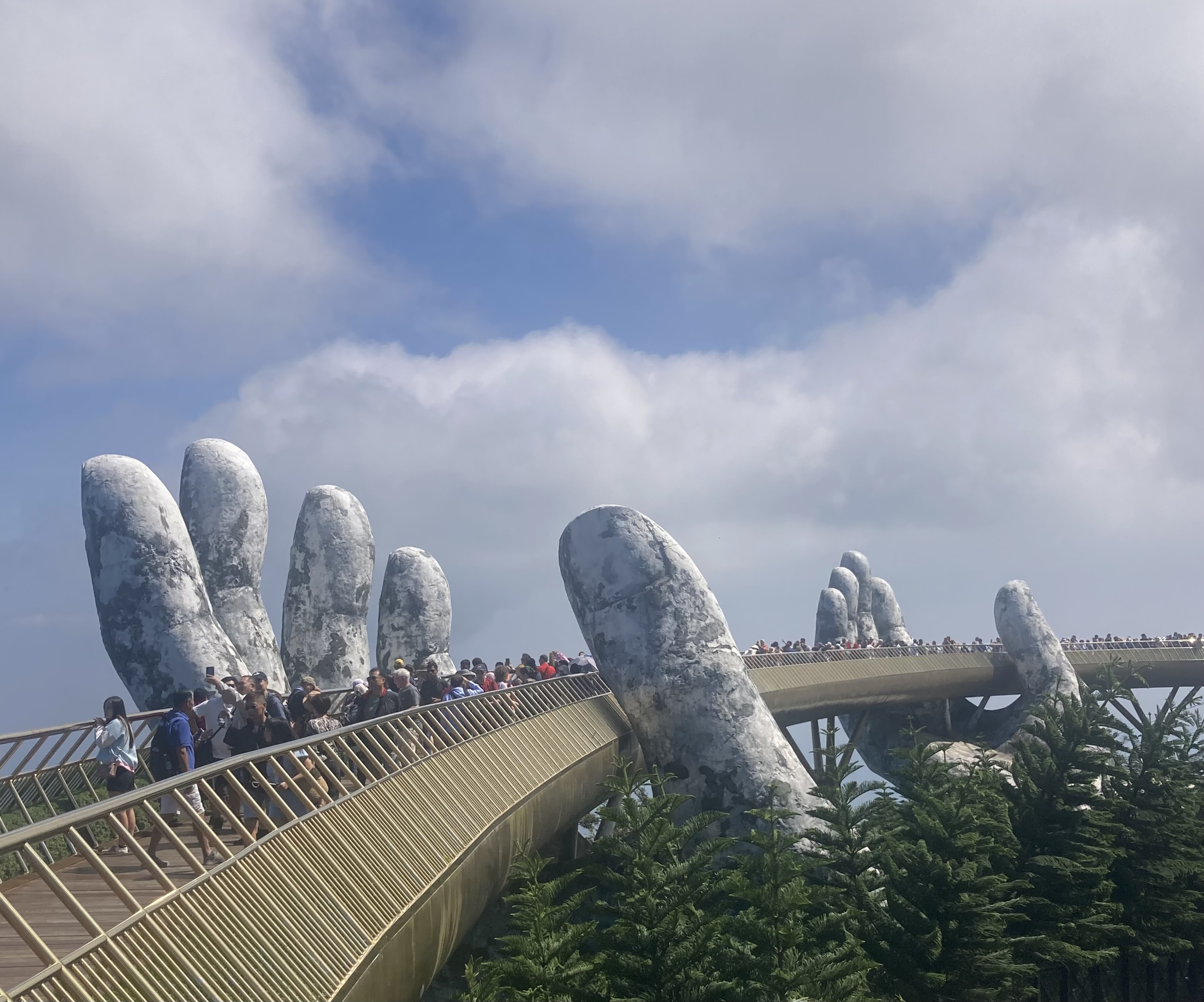 Da Nang est une halte pour visiter l’atypique parc d’attraction Bana Hills sun world, situé à 1487m d’altitude au-dessus de la mer. On y accède par funiculaire, pour découvrir notamment les beaux décors du french village et de ses jardins, et surtout photographier son populaire Golden Bridge.